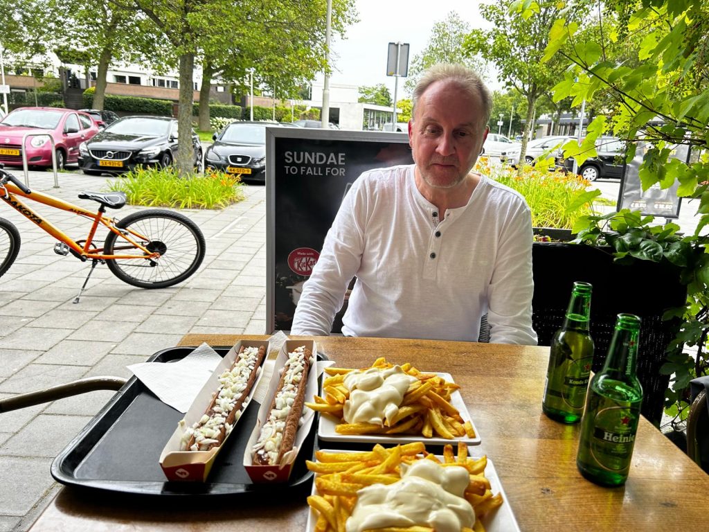 Die Tour war mit der Maasroute identisch. Unterwegs eine kurze Begegnung mit einer hollländischen Rennradfahrerin gehabt. Sie erzählte uns von ihrem30 Tage Trip nach Barcelona, ohne E Bike! Was Jochen und ich hier machen,ist für viele nur ein Warm-Up. Wir sind trotzdem zufrieden und haben uns abends mit XXL Pommes und XXL Frikandel belohnt,ca. 3.000 Kalorien. Morgen geht es weiter Richtung Zeeland.